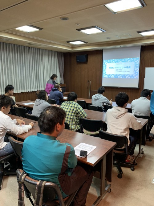 職員の方に対して「腰痛予防体操」をテーマに実技演習行いました。