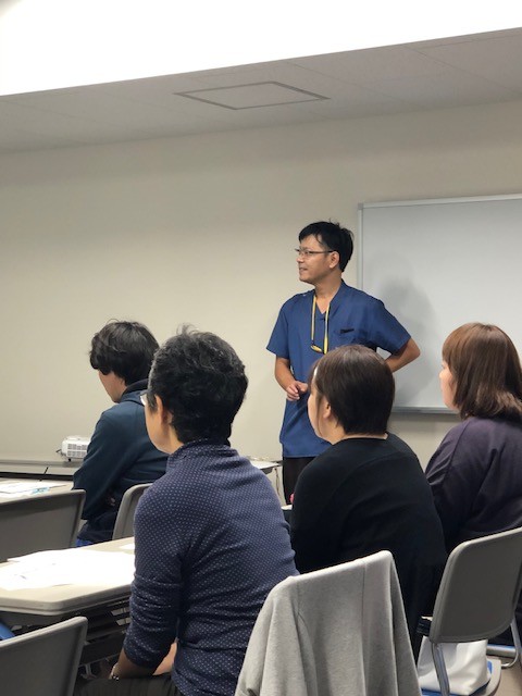 菊野PTと北原PTの共同発表でした。参加者は、20名以上になり盛況に終了いたしまいした。北原PTは、パーキンソン病のリハビリテーションの総論、菊野PTは、担当利用者の症例報告でした。このようにパーキンソン病という指定難病に対して、一例、一例、丁寧に取り組むことによって、最良なリハビリテーションのアプローチと連携が構築されると考えます。