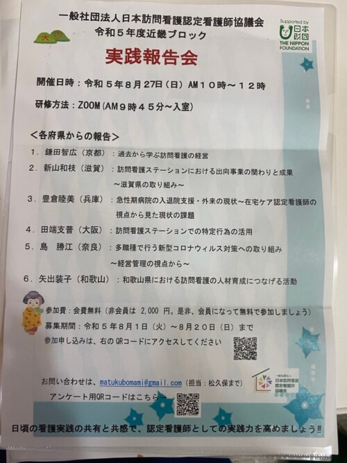 8月27日(日)に、『リハビリ訪問看護ステーション ルピナス』の島部長が認定看護師の活動報告を実施しました。