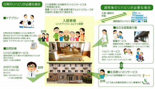 ・入居後看護が必要になられた場合は、リハビリ訪問看護ステーションルピナス等で訪問看護させていただきます。